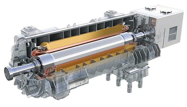 汽轮发电机是将通过汽轮机产生的机械能(转动动能)转化为电能的设备。为满足社会需求,710公海赌赌船官网欢迎您不断地进行技术开发,为客户提供从小到大的各种容量等级的产品。同时,与以往相比,扩大了高效可靠的间接氢冷方式的应用范围。此外,为满足系统运行操作需求,我们正在努力提高系统的可操作性。